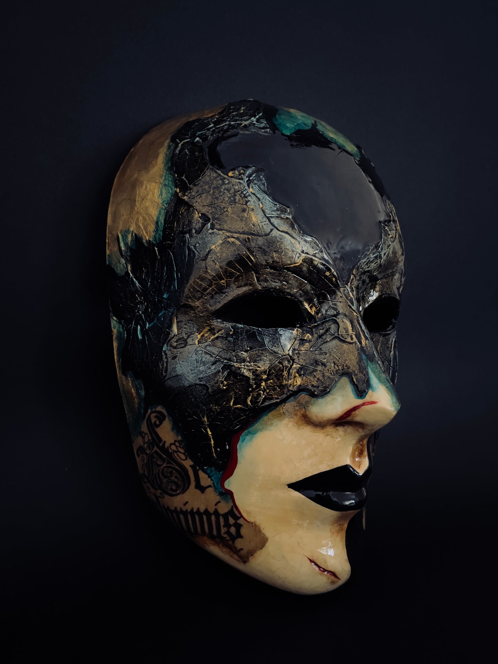 All of my masks are handmade using the best quality materials. For the base of the masks I use a special wool paper called Carta Lana, a thick paper that is made in Venice especially for mask making. My technique is exactly the same as the one that is used in Venice for mask making. All of my masks are suitable for most adult faces, however I do have different shapes and sizes, so don’t hesitate to write if you need something special. The masks are painted with acrylic paint and different artist mediums. Most of my masks can be customized, especially the ones that are made to order, so if you like one of my designs, but you want some changes, don’t hesitate to write 🙂. The masks can be secured to the face with satin ribbons or an adjustable elastic band, they are all wearable, but can also be used as decorative masks.