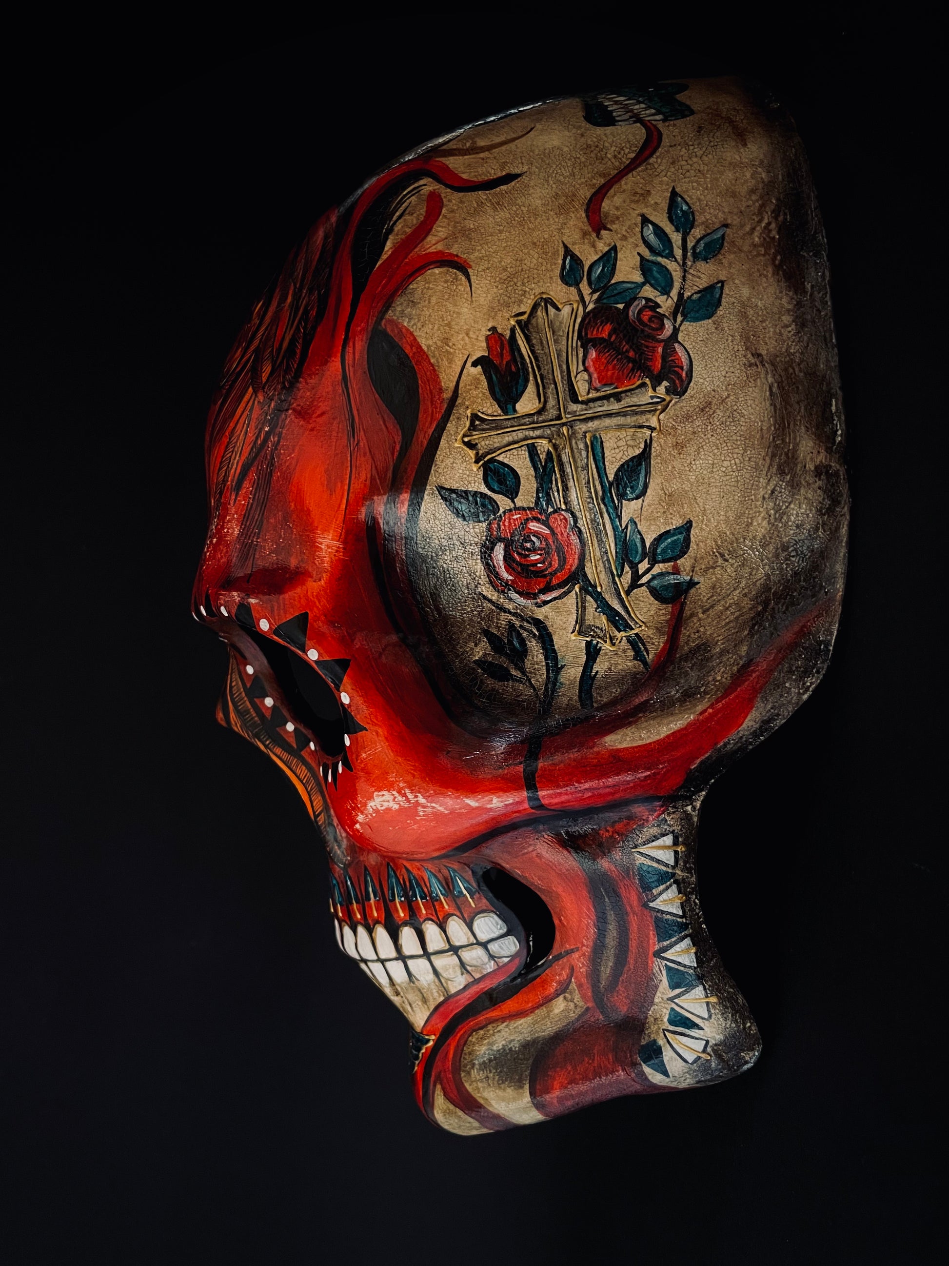 All of my masks are handmade using the best quality materials. For the base of the masks I use a special wool paper called Carta Lana, a thick paper that is made in Venice especially for mask making. My technique is exactly the same as the one that is used in Venice for mask making. All of my masks are suitable for most adult faces, however I do have different shapes and sizes, so don’t hesitate to write if you need something special. The masks are painted with acrylic paint and different artist mediums. Most of my masks can be customized, especially the ones that are made to order, so if you like one of my designs, but you want some changes, don’t hesitate to write 🙂. The masks can be secured to the face with satin ribbons or an adjustable elastic band, they are all wearable, but can also be used as decorative masks.