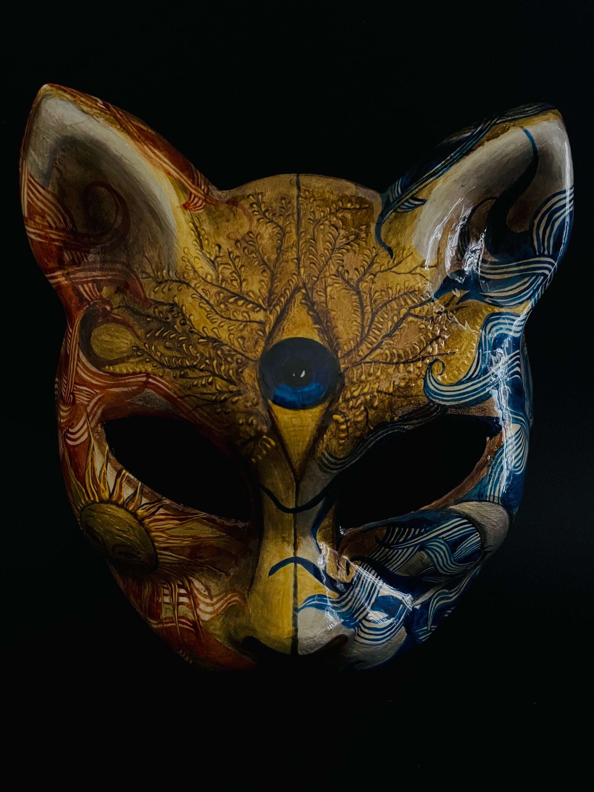 All of my masks are handmade using the best quality materials. For the base of the masks I use a special wool paper called Carta Lana, a thick paper that is made in Venice especially for mask making. My technique is exactly the same as the one that is used in Venice for mask making. All of my masks are suitable for most adult faces, however I do have different shapes and sizes, so don’t hesitate to write if you need something special. The masks are painted with acrylic paint and different artist mediums. Most of my masks can be customized, especially the ones that are made to order, so if you like one of my designs, but you want some changes, don’t hesitate to write 🙂. The masks can be secured to the face with satin ribbons or an adjustable elastic band, they are all wearable, but can also be used as decorative masks.